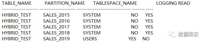 TABLE_NAME PARTITION_NAME TABLESPACE_NAME LOGGING READ