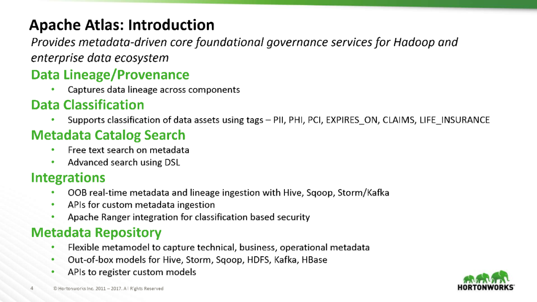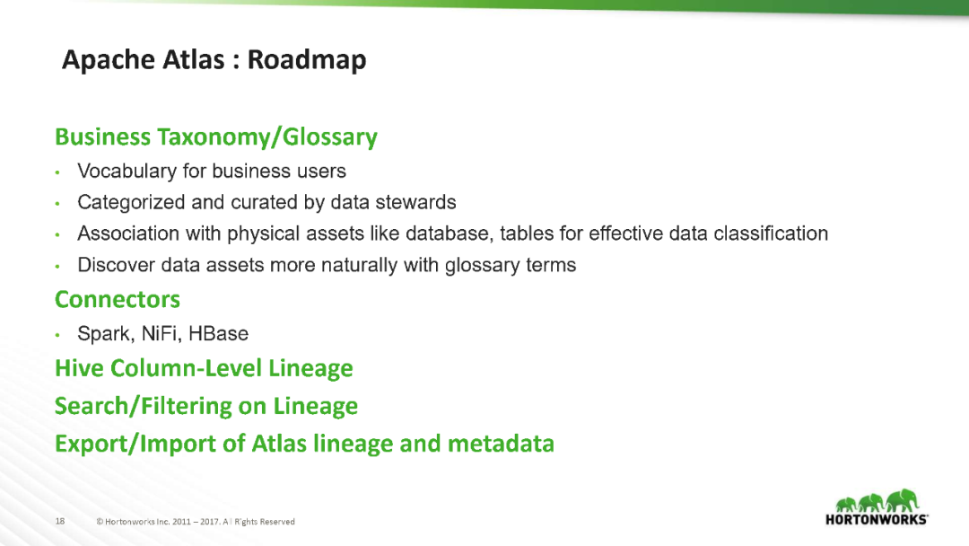 Apache Atlas是Hadoop之上的元数据管理和数据治理平台,可提供数据资产打标、数据元数据管理、数据血缘跟踪等功能。下面分享的ppt全面系统的介绍了Atlas
