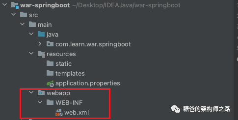 这种方式步骤会稍微多一点,但是如果你是一个老司机,一定对在没有SpringBoot之前的项目结构非常熟悉。没错,我们就是要构建出原生的war项目。像下面这样: