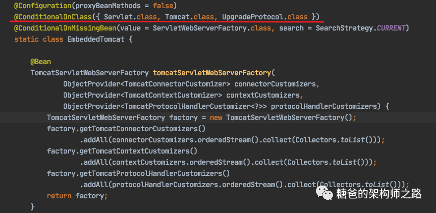 所以TomcatServletWebServerFactory压根儿就不会加载。也就不会出现同时加载两个Web容器的情况。
