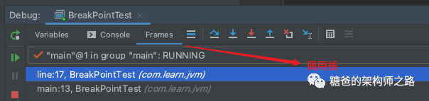 调用栈可以方便的查看在断点之前有哪些方法被调用,这个在查看一些框架的源码,尤其是调用层次很深的情况时显得格外有用。如下图: