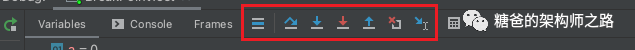 下面截图中红框部分是各种调试执行按钮,我们从左到右一个一个来说