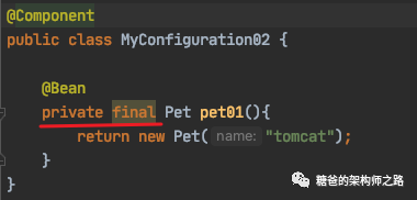 配置类可以当作一个普通类使用:也就是说@Bean方法可以是private、final