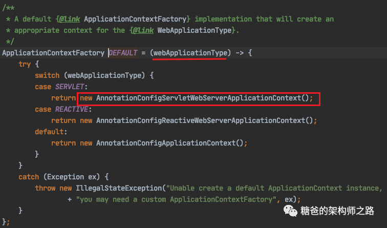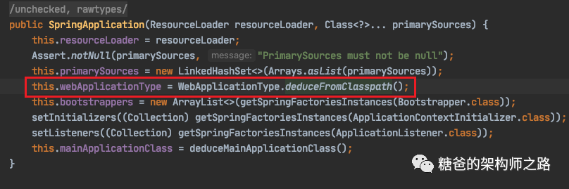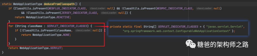 webApplicationType会根据当前导入的环境判断出是哪种类型的应用,具体代码如下: