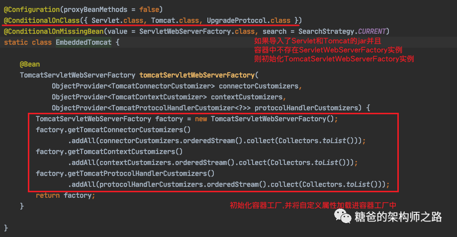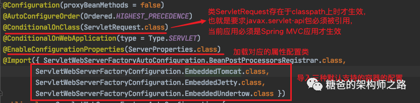 ServletWebServerFactoryAutoConfiguration自动配置类会初始化自定义配置类