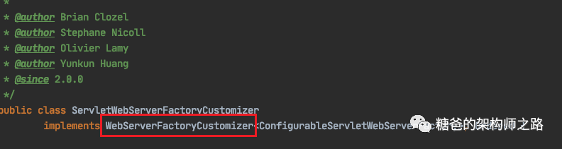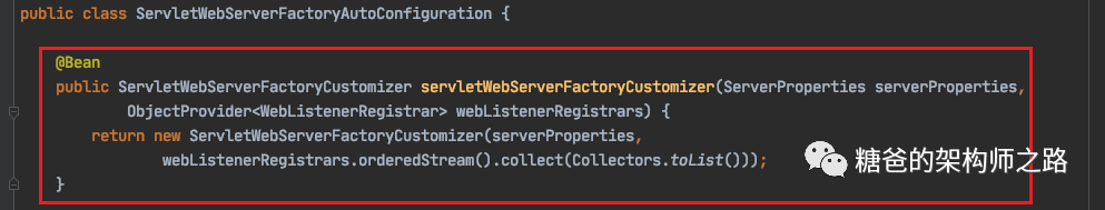ServletWebServerFactoryCustomizer,它和我们自定义的配置类一样,也实现了WebServerFactoryCustomizer接口