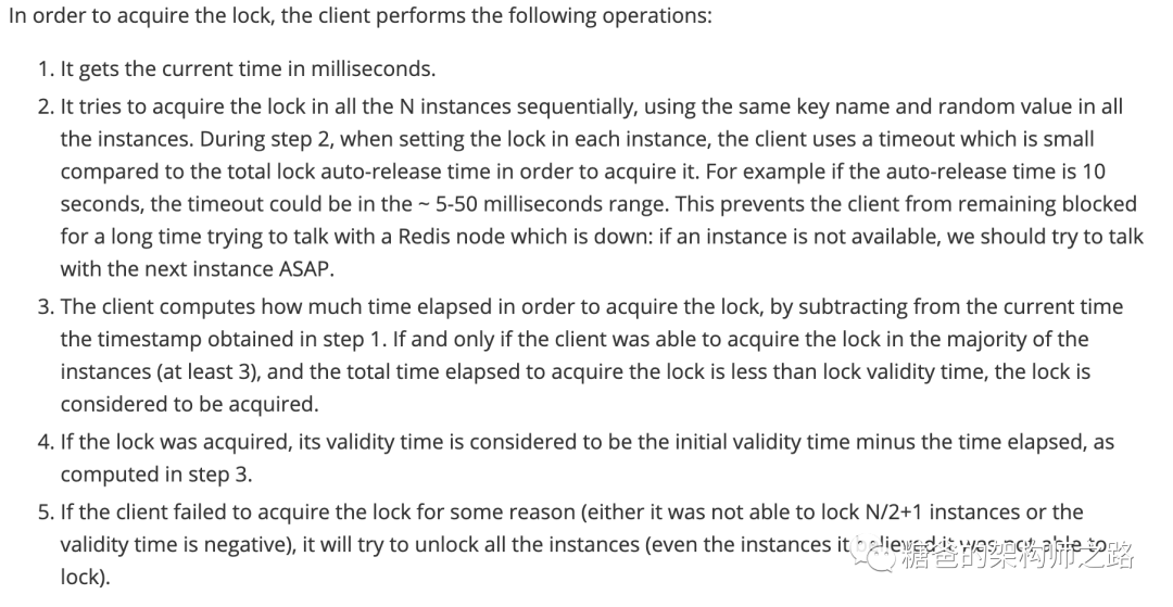 获取当前时间戳,单位是毫秒 client尝试按照顺序使用相同的key,value获取所有Redis服务的锁,在获取锁的过程中的获取时间比锁过期时间短很多,这是为了不要过长时间等待已经关闭的redis服务。并且试着获取下一个Redis实例。比如:TTL为5s,设置获取锁最多用1s,所以如果1s内无法获取锁,就放弃获取这个锁,从而尝试获取下个锁