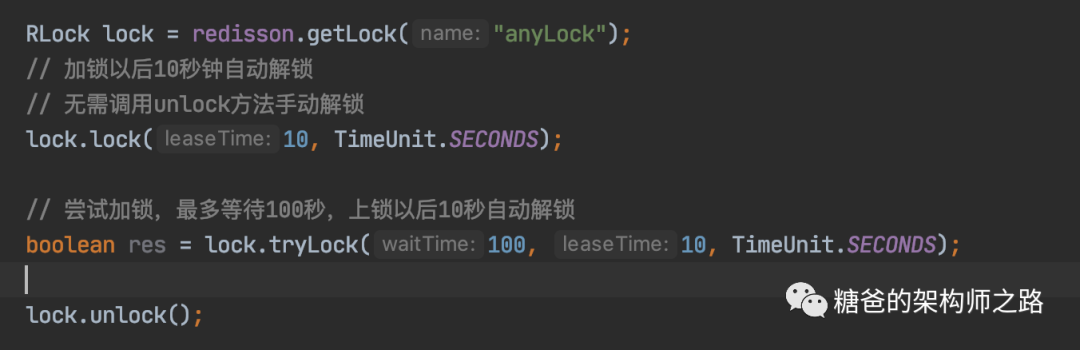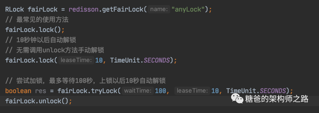 那如何通过Redisson来使用Redis的分布式锁呢?下面我们来看一下代码实现