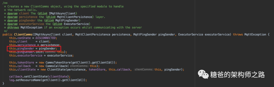 public void init(ClientComms comms) {if (comms == null) {throw new IllegalArgumentException("ClientComms cannot be null.");}// 包装ClientComms对象this.comms = comms;}
