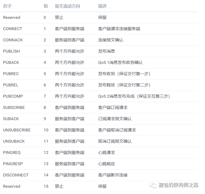 用来描述报文的类型,通常用于客户端和服务端进行双向通信时对报文进行分类,不同的报文类型处理的方式也不同。