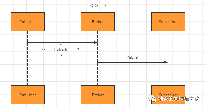 QOS= 0:"至多一次",对于client而言,有且仅发一次publish包,对于broker而言,有且仅发一次publish。简而言之,就是仅发一次包,是否收到完全不管,适合那些不是很重要的数据。
