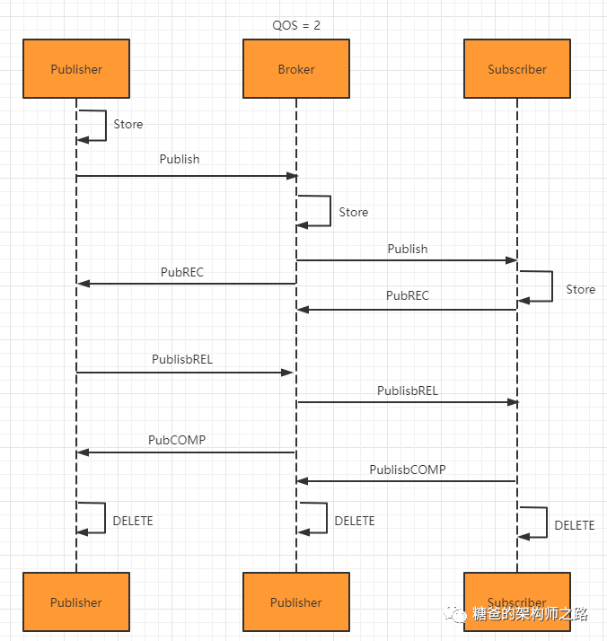 注意:对于QOS2的情况,增加了一个PUBREL及PUBCOM的过程,同时broker端做了如下的特殊处理。