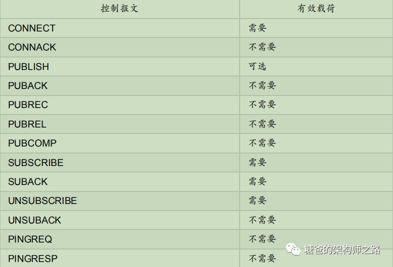 Payload消息体是MQTT数据包的第三部分。包含CONNECT、SUBSCRIBE、SUBACK、UNSUBSCRIBE四种类型的消息。也就是说,这四种控制报文的消息体是必须要有的