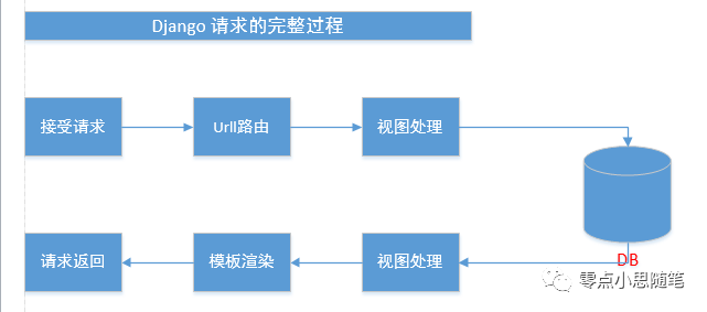 Django 建立的是动态网站,一般情况,每个请求都会经过这样一个过程: