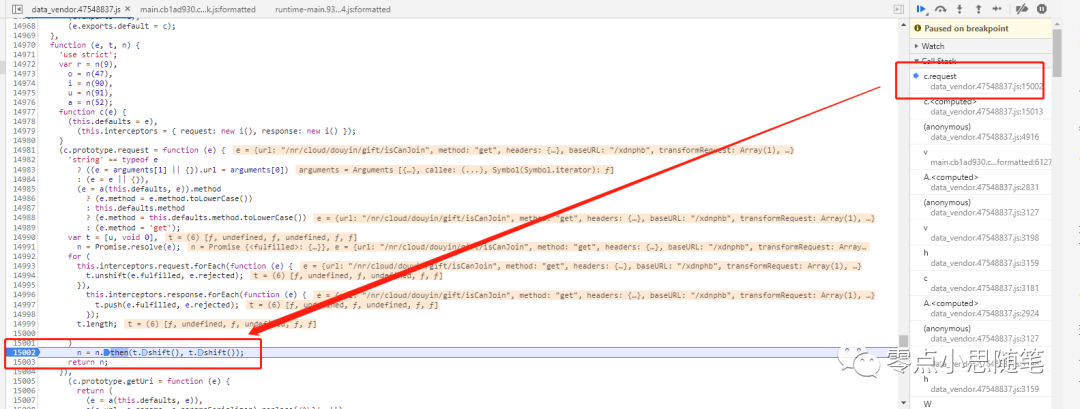 刚进入断点,发现所需参数已经生成,所以要按照堆栈信息往前分析,来到这个地方