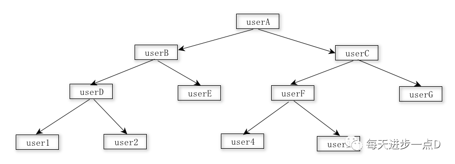 二叉树特点:每个节点的左儿子小于父节点,父节点小于右儿子。如果我们要查user2的话,跟着上图我们的查询路径就是:userA -> userB -> userD -> user2。时间复杂度为O(log(N))。