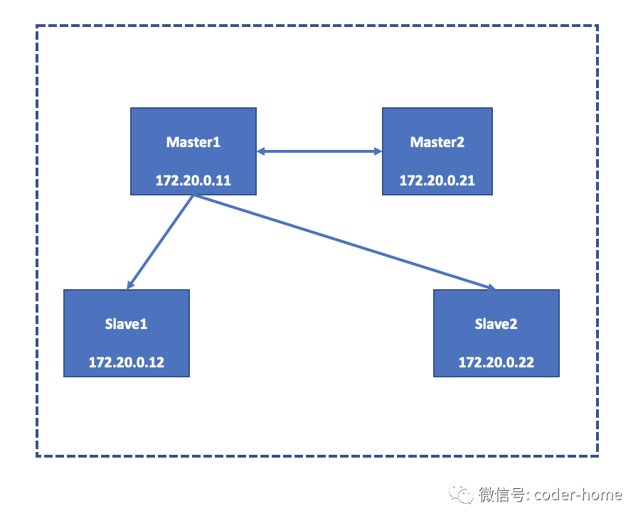 是因为两个主节点之间互为主备,它两个彼此之间要互相作为对方的从节点。