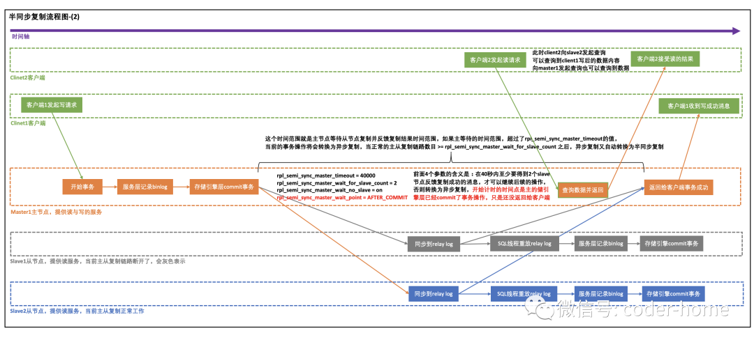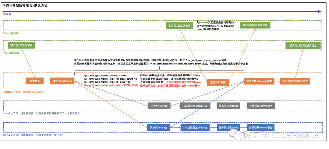 结尾。在半同步复制中,主节点等待从节点反馈消息的时间如果超过了最大等待时间的阈值,半同步转换会异步同步。等主从链路恢复后,下次的事务会自动再次转换为半同步复制,无需人工切换。