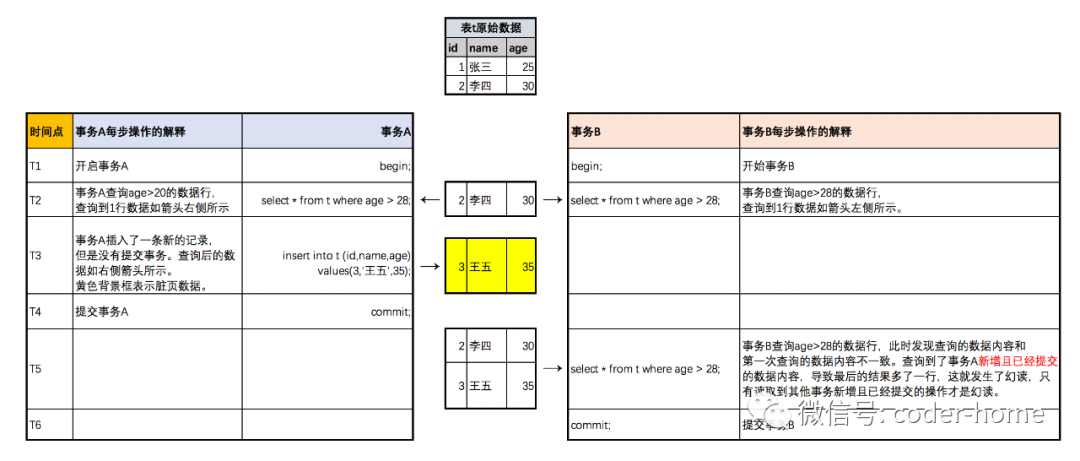 注意:这里的重点是读取到其他事务insert 、update、delete