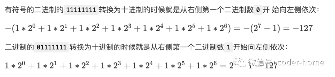 。去掉左侧第一位用来标记正负号的位置,还剩余7个位置,这7个位置都是1的时候是最大的二进制数。如果前面使用一个负号(此时用1表示)就是最小的二进制数,如果前面增加一个正号(此时用0表示)就是最大的二进制数。所以一个有正负号的8位的二进制数的取值范围为:[11111111,01111111]