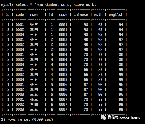 前后两张表的数行数的笛卡尔积。但是在MySQL