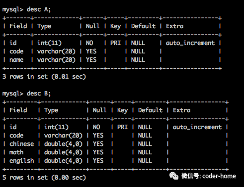 理解了上面的几个join的区别后,接下来我们来创建两个表student
