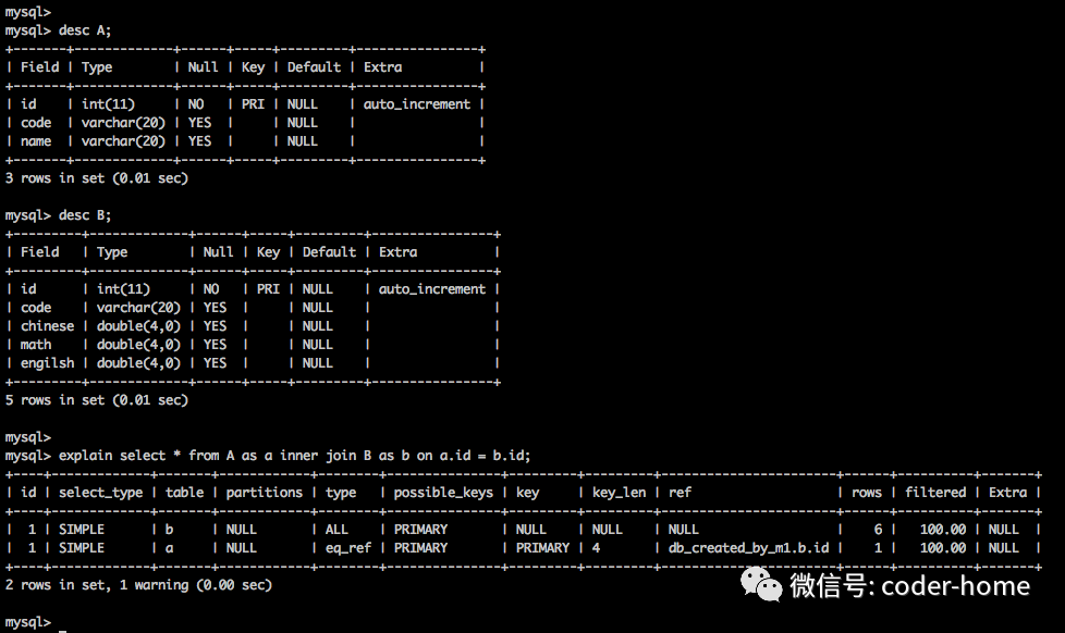 注意:上面我们在对比A和B两个表在join关联时占用的空间大小的时候,忽略了a.id