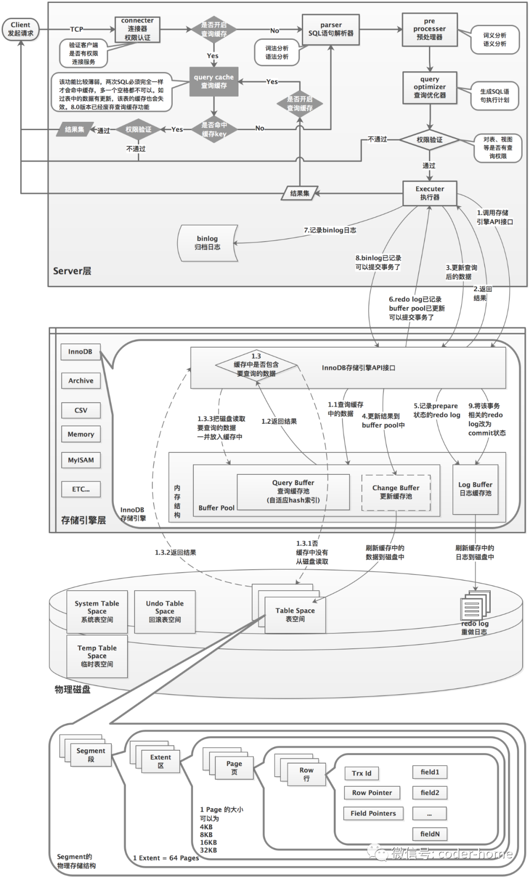 最新总结了一下MySQL中,查询语句是如何执行的,画了一张图,如下所示。