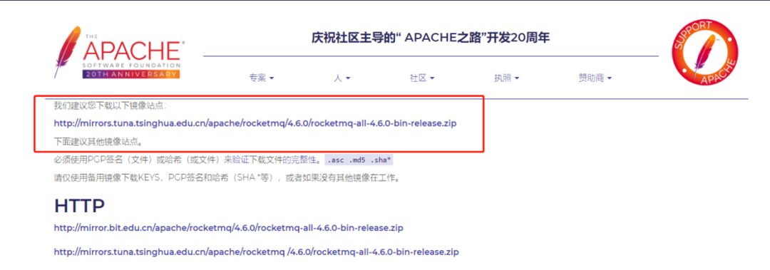 2.下载最新版二进制文件目前是4.6.0 https://www.apache.org/dyn/closer.cgi?path=rocketmq/4.6.0/rocketmq-all-4.6.0-bin-release.zip