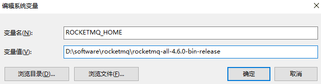 3.环境变量配置,变量名ROCKETMQ_HOME 变量值,二进制文件解压后地址