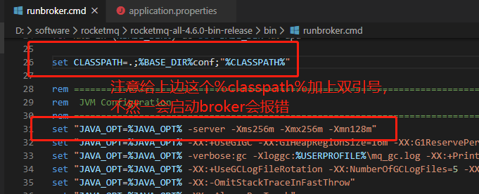 改成如下这样256m即可如下:改runbroker.cmd的时候注意给%classpath%加上双引号,不然启动会报错。