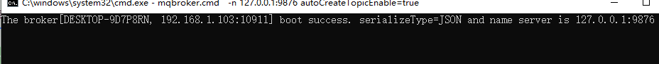 start mqbroker.cmd -n 127.0.0.1:9876 autoCreateTopicEnable=true