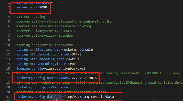 解压之后进入rocketmq-externals\rocketmq-console\src\main\resources文件夹,打开application.properties进行配置。