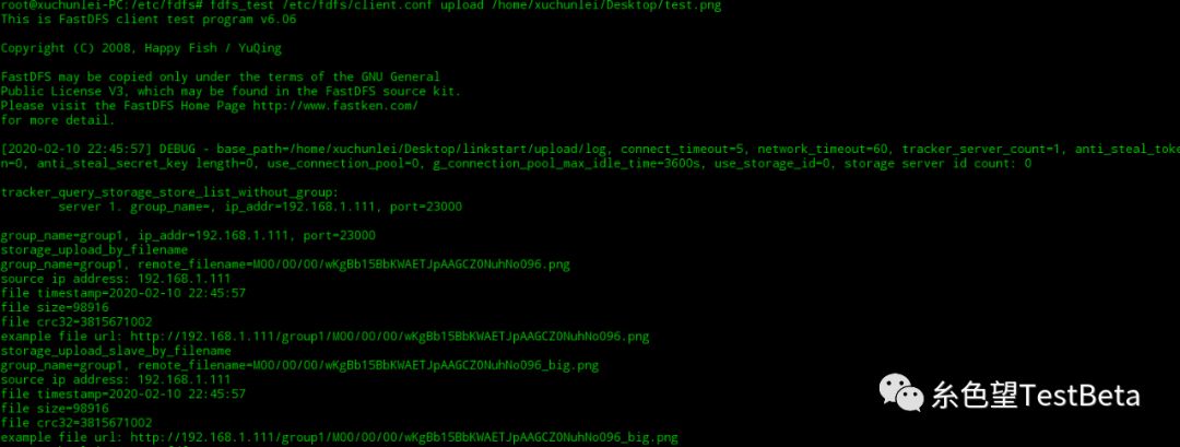 fdfs_test /etc/fdfs/client.conf upload /home/xuchunlei/Desktop/test.png