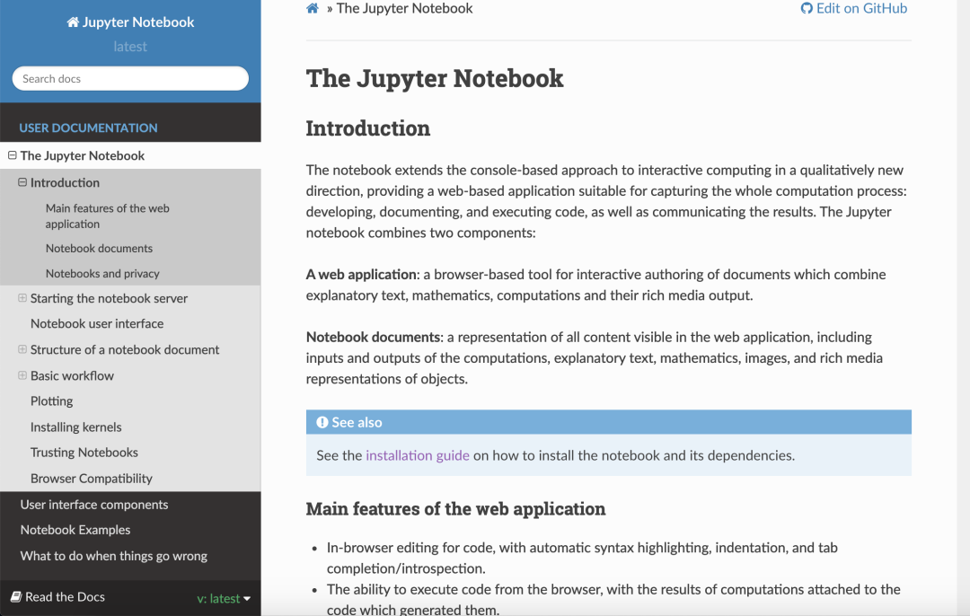 下面是官方的一些介绍,参考Jupyter notebook官方文档[1]
