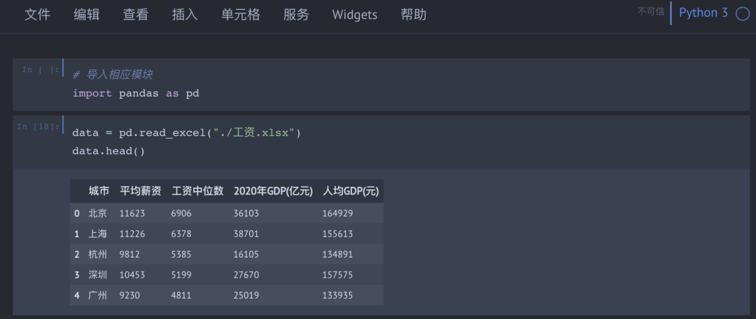 Jupyter notebook将基于控制台的方法扩展到了一个全新的方向,提供了一个基于 Web 的应用程序,适用于捕获整个计算过程:开发、记录和执行代码,以及交流结果。Jupyter notebook结合了两个组件:
