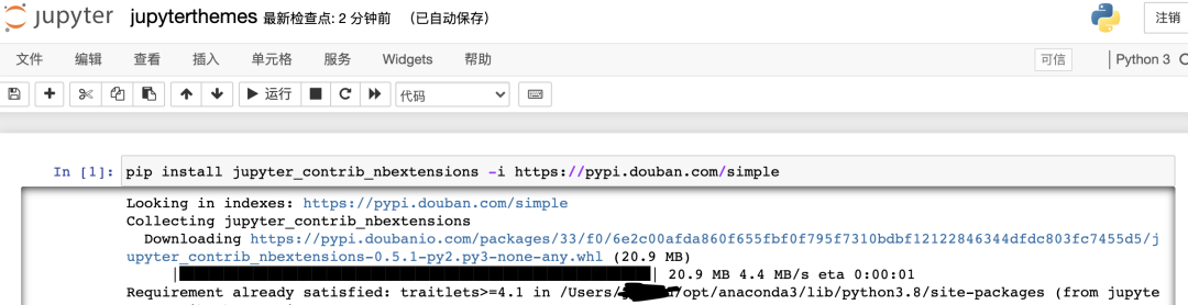 pip install jupyter_contrib_nbextensions -i https://pypi.douban.com/simple