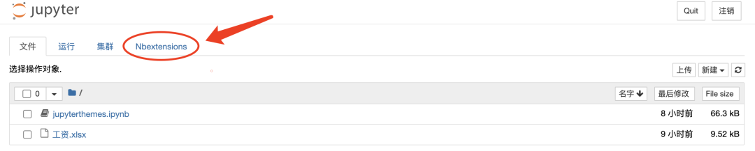 上面两个步骤都没报错后,启动 Jupyter Notebook,上面选项栏会出现 Nbextensions