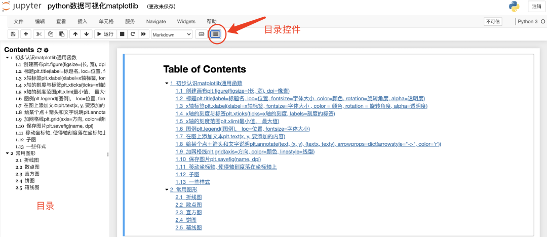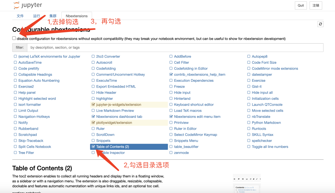点开 Nbextensions 的选项,并勾选 Table of Contents