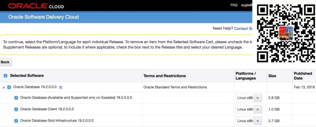 上搜索 Database 产品可以找到,目前发布的是 19.2 版本,仅支持 Exadata ,但是同样可以在 X86 平台安装建库:
