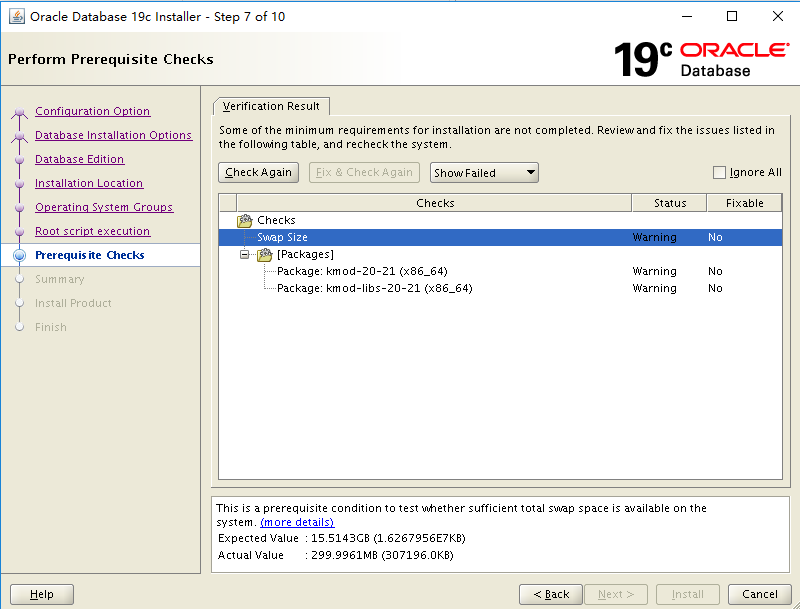 这里swap居然要求15.5G,Package包是因为版本问题暂且忽略