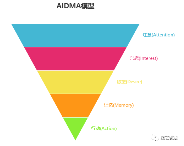 Lewis提出的这个策略,后来被称为AIDA模型,即意识-兴趣-欲望-行动。在接下来的100年里,随着漏斗模型的推广,为了适应新的媒体平台,以及用户行为路径的改变,它经过多次的修改和扩展,产生了各种衍生版本,比如AIDMA、AISDALSLove、AISAS、AARRR等。