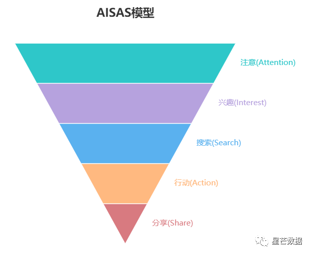 因为AIDMA模型缺少用户反馈的环节,且随着互联网用户教育的完成,消费者行为模式发生了改变,随之衍生出了AISAS模型(Attention,Interest,Search,Action,Share),也就是注意-兴趣-搜索-行动-分享