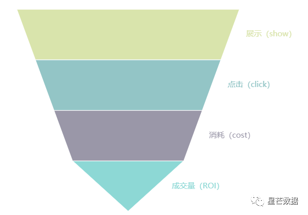 广告行业的展点消漏斗是很经典的案例,详细明了展现出平台的广告展现->点击->消耗->成交。结合相关的数据,可以根据此漏斗定位问题,或是优化产品/落地页,或是增强目标人群投放的精准度。