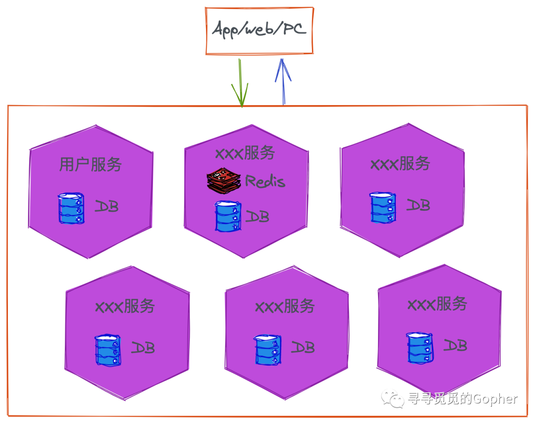 既然单体应用是将全部功能都集成在一个工程里去编译部署,那现在只要把功能拆分出来,将每个拆分的模块作为一个单独的服务(即微服务),去独立部署,这一个个的微服务共同组成整个应用不就好了吗。