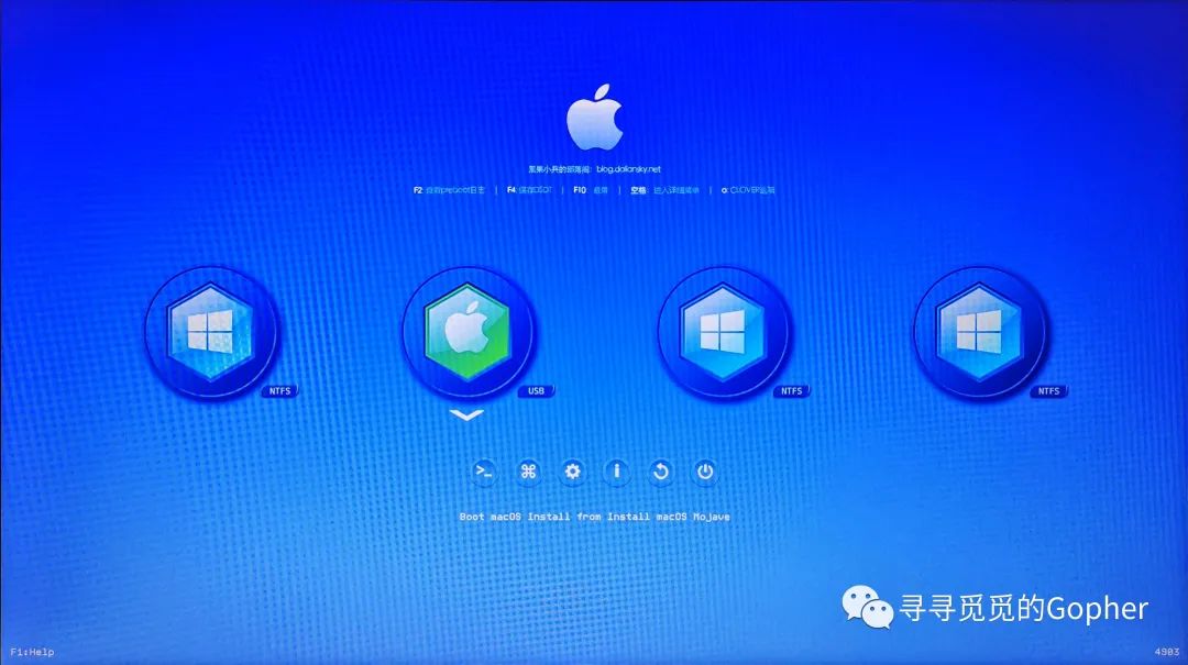 此时会进入到U盘的Clover引导界面,选择 BootmacOSInstallformInstallmacOSMojave