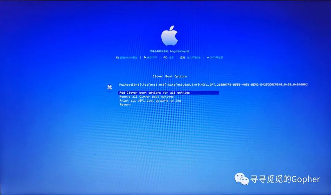 然后重启,继续按F12,选择U盘启动,选择 CloverBootOptions