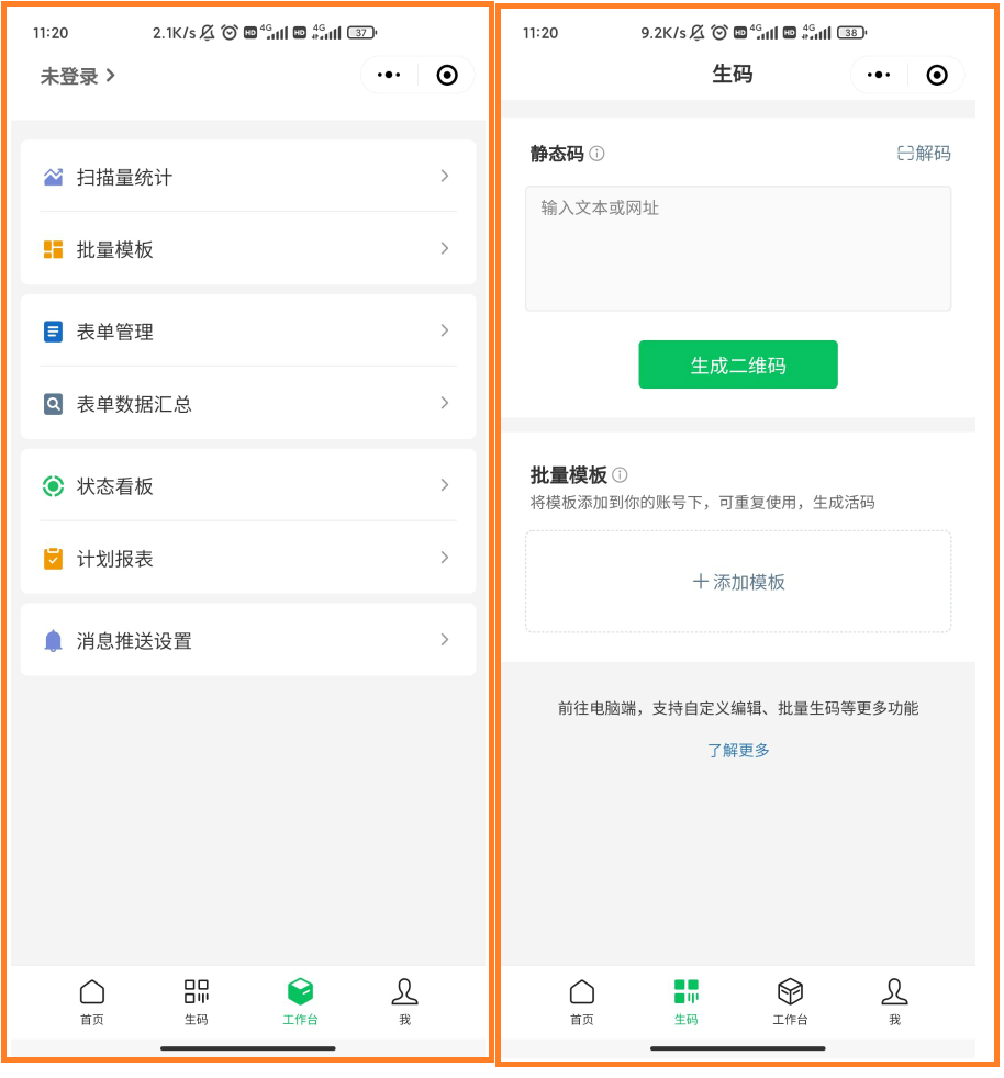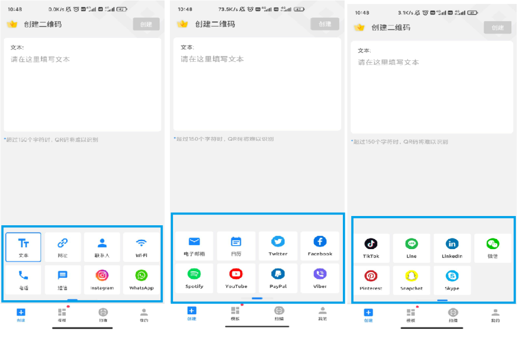 可以用文本、网址链接、联系人、电话等等生成二维码