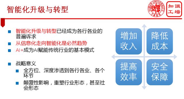 机器计算智能、感知智能达到甚至超越人类;智能化升级与转型已经成为各行各业的普遍诉求;从信息化走向智能化是必然趋势。