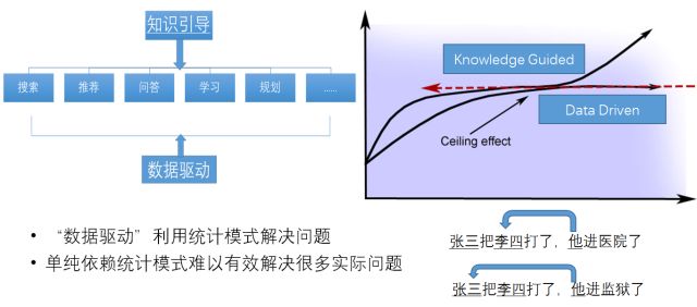 然后,肖仰华教授介绍了,知识引导将成为解决问题的主要方式。很多问题纯粹用数据驱动统计模型是很难去解决的,还是需要很多知识的。